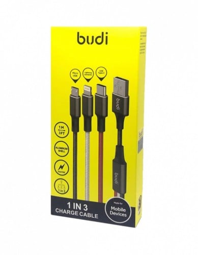 budi 1 in 3 charge Cable Micro, Type-C, Lightning