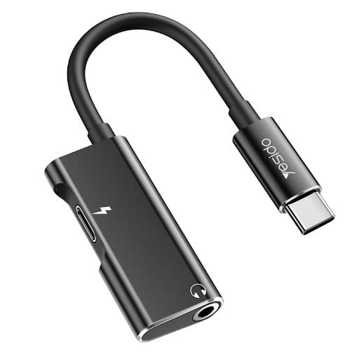 - تم تصميم مهايئ Yesido YAU22 لتوصيل سماعات الرأس في وقت واحد بموصل Mini-Jack 3.5mm وكابل شحن من النوع C بهاتف ذكي أو جهاز لوحي بواجهة Type-C.